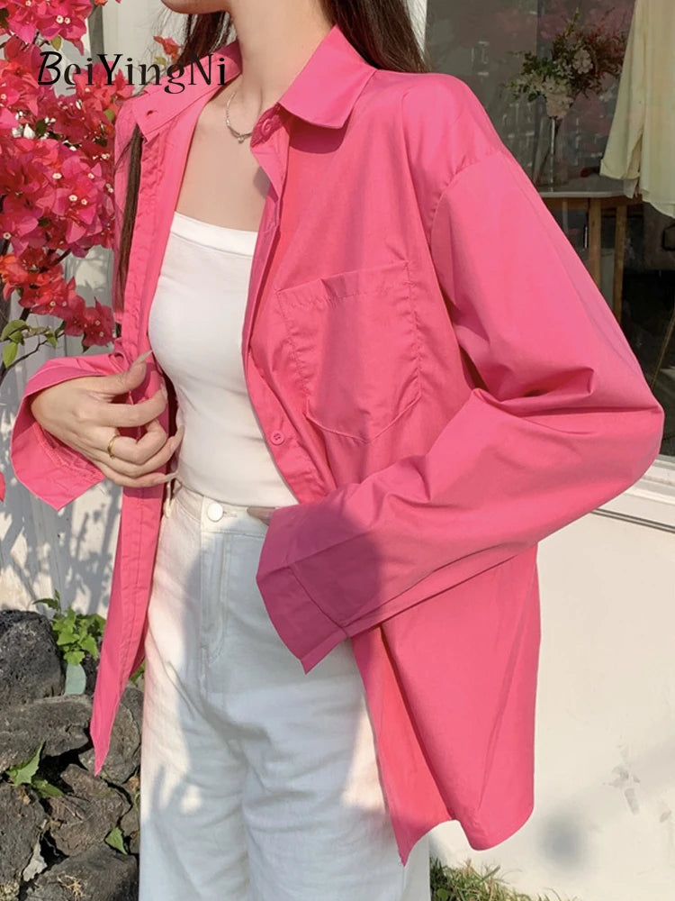 Beiyingni 2025Spring Autumn Women Shirts White Plain Loose Oversized Blouses Female Tops Loose BF Korean Style Blusas Pockets